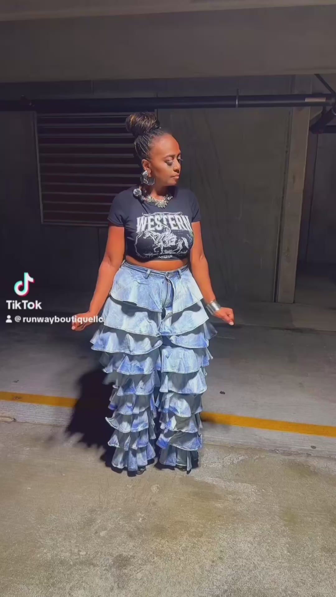 Ruffle JeansThese stylish and unique Ruffle Jeans feature delicate ruffle details that add a touch of femininity to any outfit. Made from high-quality denim, these jeans provide both comfort and style. Elevate your wardrobe with these fashionable jeans today.